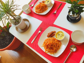 ナポリタンつくったの٩(๑❛ᴗ❛๑)۶姉が家に遊びに来るので、張り切りましたwふだんはこんなテーブルセッティングしないww