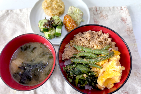 ***今日のメニュー*** ■そぼろの3色丼 ■きゅうりと塩…