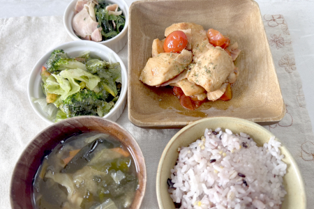 ***今日のメニュー*** ■和風トマトソースのチキンステー…