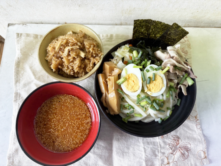 ***今日のメニュー*** ■ ピリ辛つけうどん ■ 炊き込…